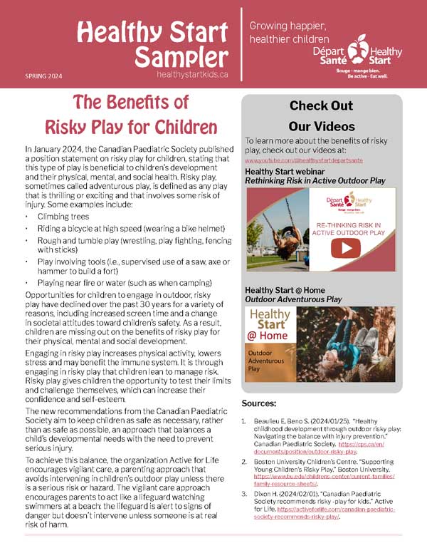 Our Healthy Start Sampler newsletter offers examples of activities and information you will find in our downloadable resources.